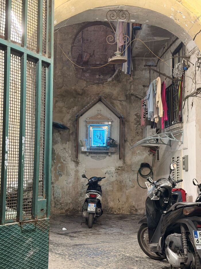 W Neapolu na każdym kroku i ścianie domu krzyże, posągi, kapliczki ze zdjęciami świętych i bliskich, którzy potrzebują pomocy, murale Madonny i Maradony ze złotą aureolą, wszechobecne amulety szczęścia w kształcie papryczki chili i posypywanie solą, by odegnać czyhającego diabła.